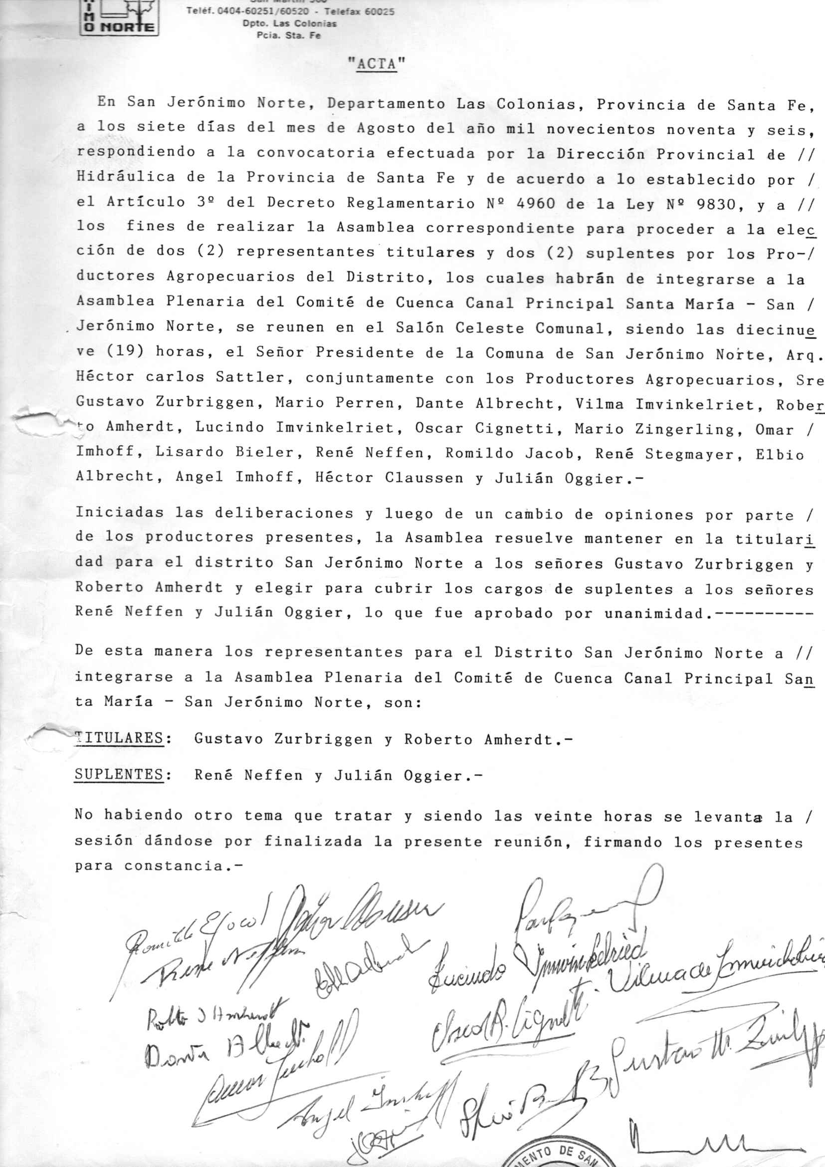 Ordenanza Nº 344: Comisión del Comité de Cuenca Canal Ptincipal Santa María - San Jerónimo Norte