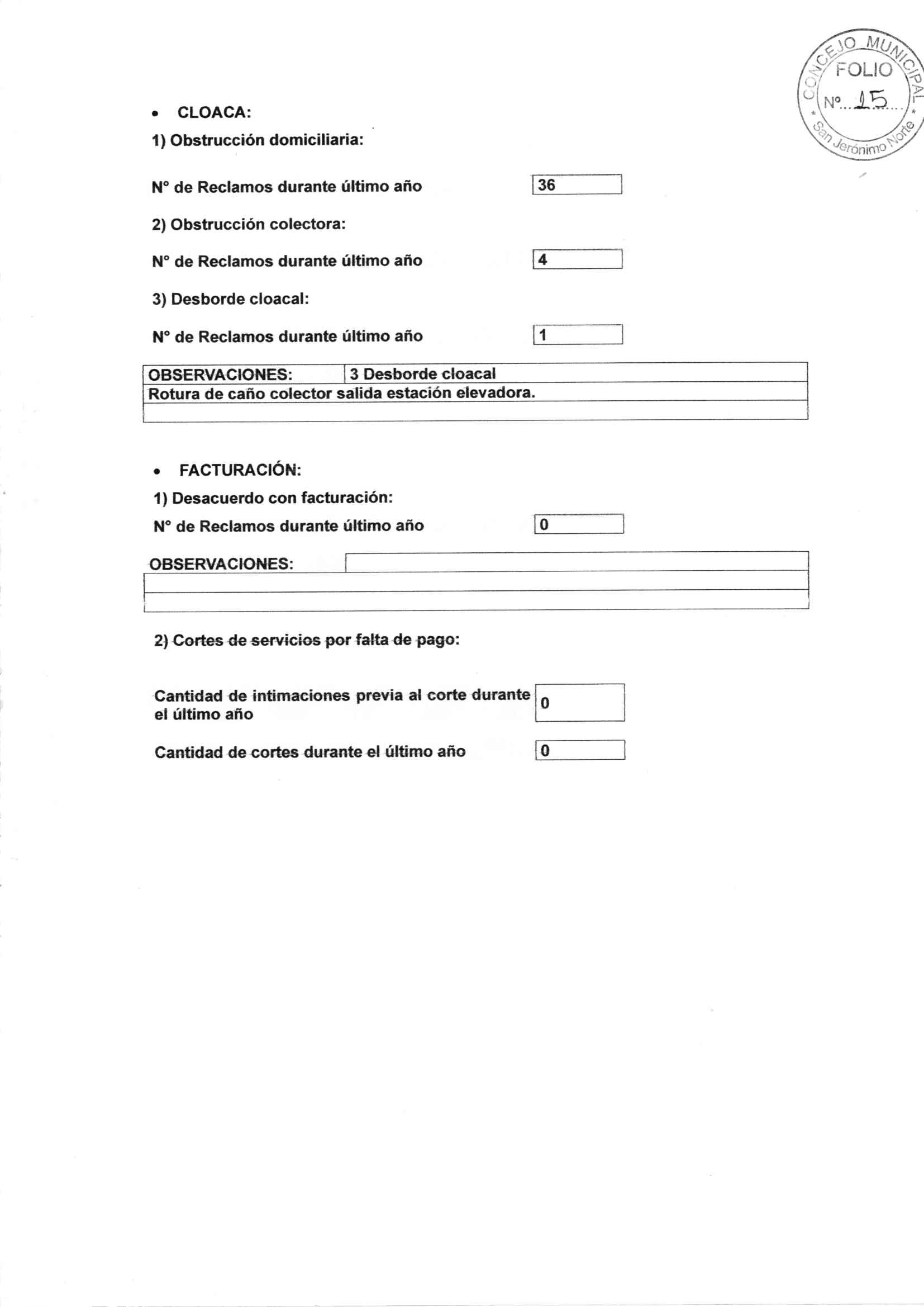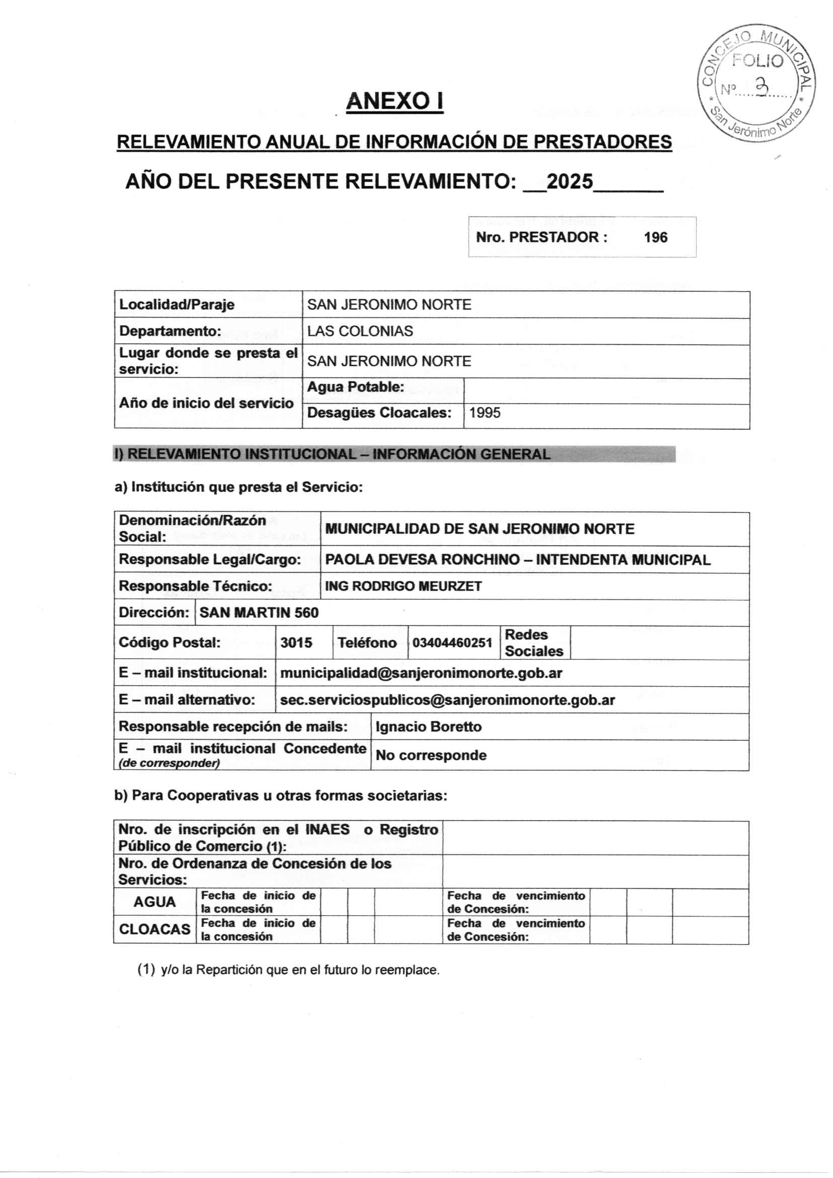Ordenanza Nº 186: Nuevo Régimen de Tarifas del Servicio de Cooperativa de Provisión de Agua Potable y Otros Servicios Públicos de San Jerónimo Norte