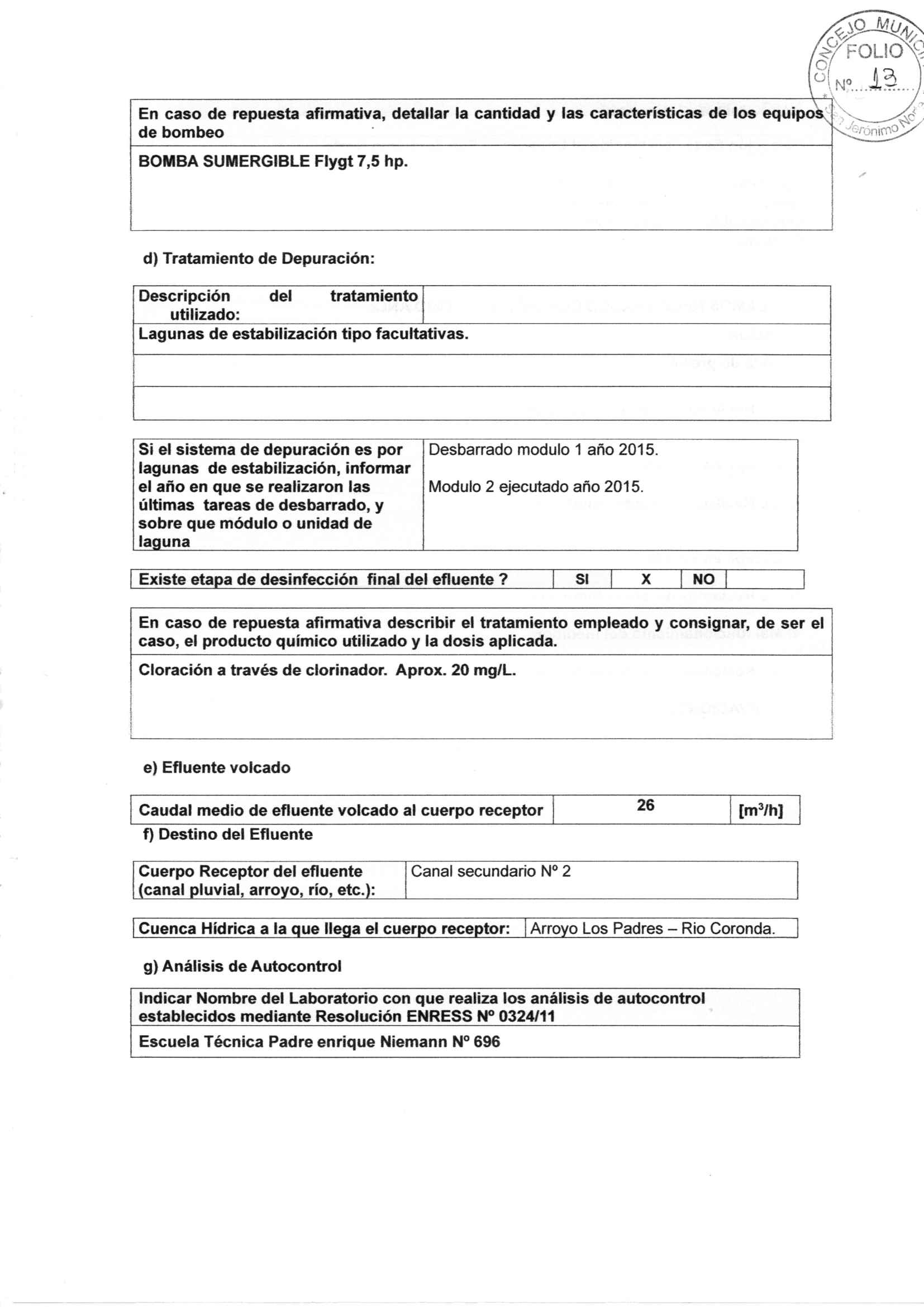 Ordenanza Nº 291: Comisión del Comité de Cuenca Canal Pricipal Santa María - Sam Jerónimo Norte ( JPG )