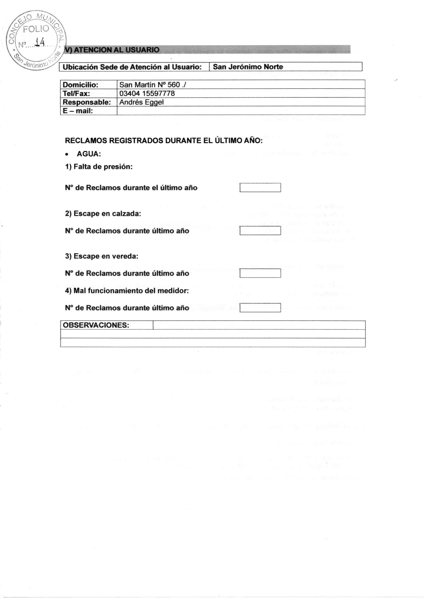 Ordenanza Nº 166: Nuevo Régimen de tarifas del Servicio de la Cooperativa de Provición de Agua Potable y Otros Servicios Públicos de San Jerónimo Norte
